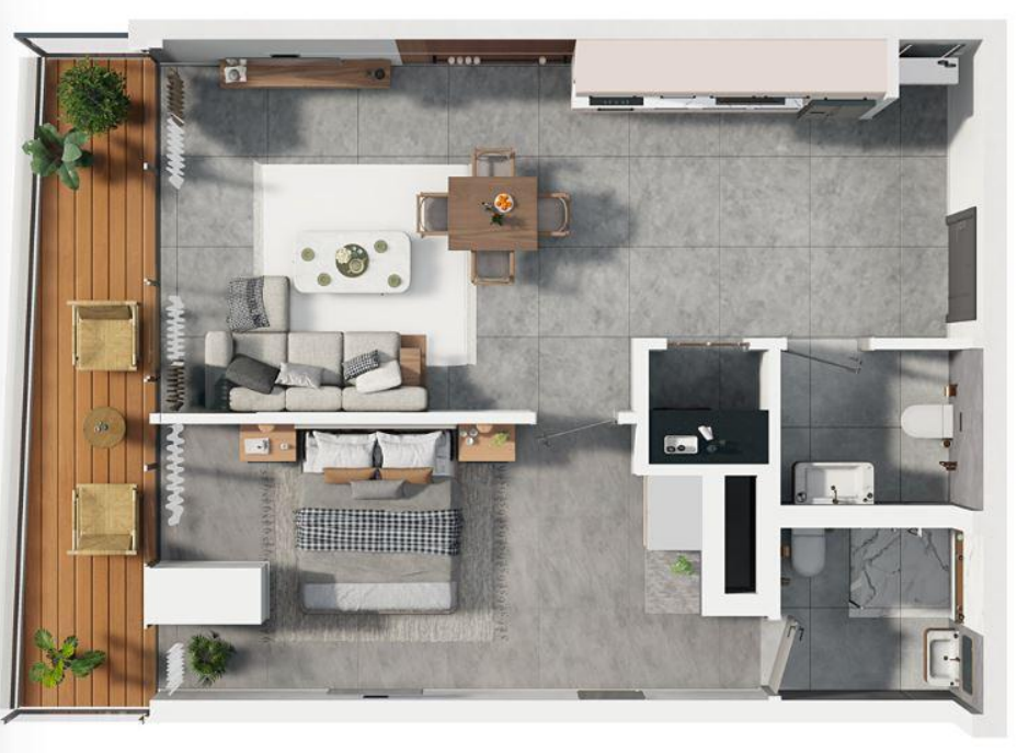 1 BED = гостиная + спальня
